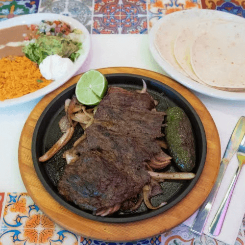 Platter price for 4-8 people. your choice of protein grilled with bell pepper & onions. served with lettuce, pico de gallo, rice, beans & Tortillas (3 tortillas per person).
