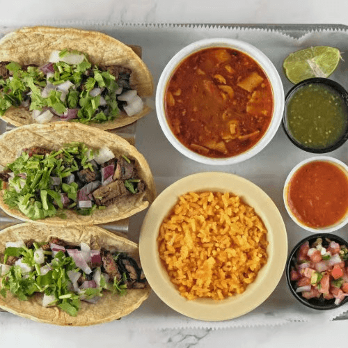 Three tacos served with rice & your choice of house salad or tortilla soup, soft or hard shell tortillas. Consuming raw or uncooked meat, poultry, seafood, shellfish or eggs may increase risk of food borne illness, especially if you have certain medical conditions. We are not responsible for an individual’s allergic reaction to our food or ingredients used in food items.