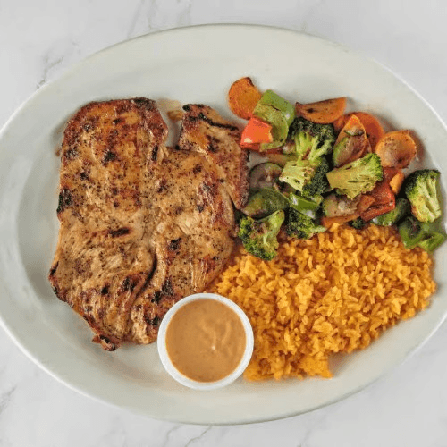 Grilled chicken breast. Served with rice, beans and guacamole salad. Consuming raw or uncooked meat, poultry, seafood, shellfish or eggs may increase risk of food borne illness, especially if you have certain medical conditions. We are not responsible for an individual’s allergic reaction to our food or ingredients used in food items. Please be aware that there may be some bones in fish fillets.